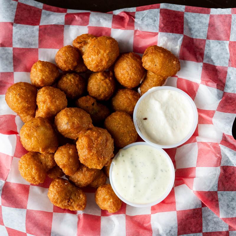 6 battered mushrooms, fried with horsey sauce and a side of ranch.